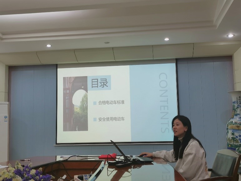 首先,由纪检委员张凡一同志做电动车安全知识微课的宣讲,从电动车购买到骑行、停放、充电过程中的系列安全问题进行了宣传教育。宣讲结束后,大家共同观看了电动车消防安全宣传片,对电动车安全知识进行了进一步的学习。