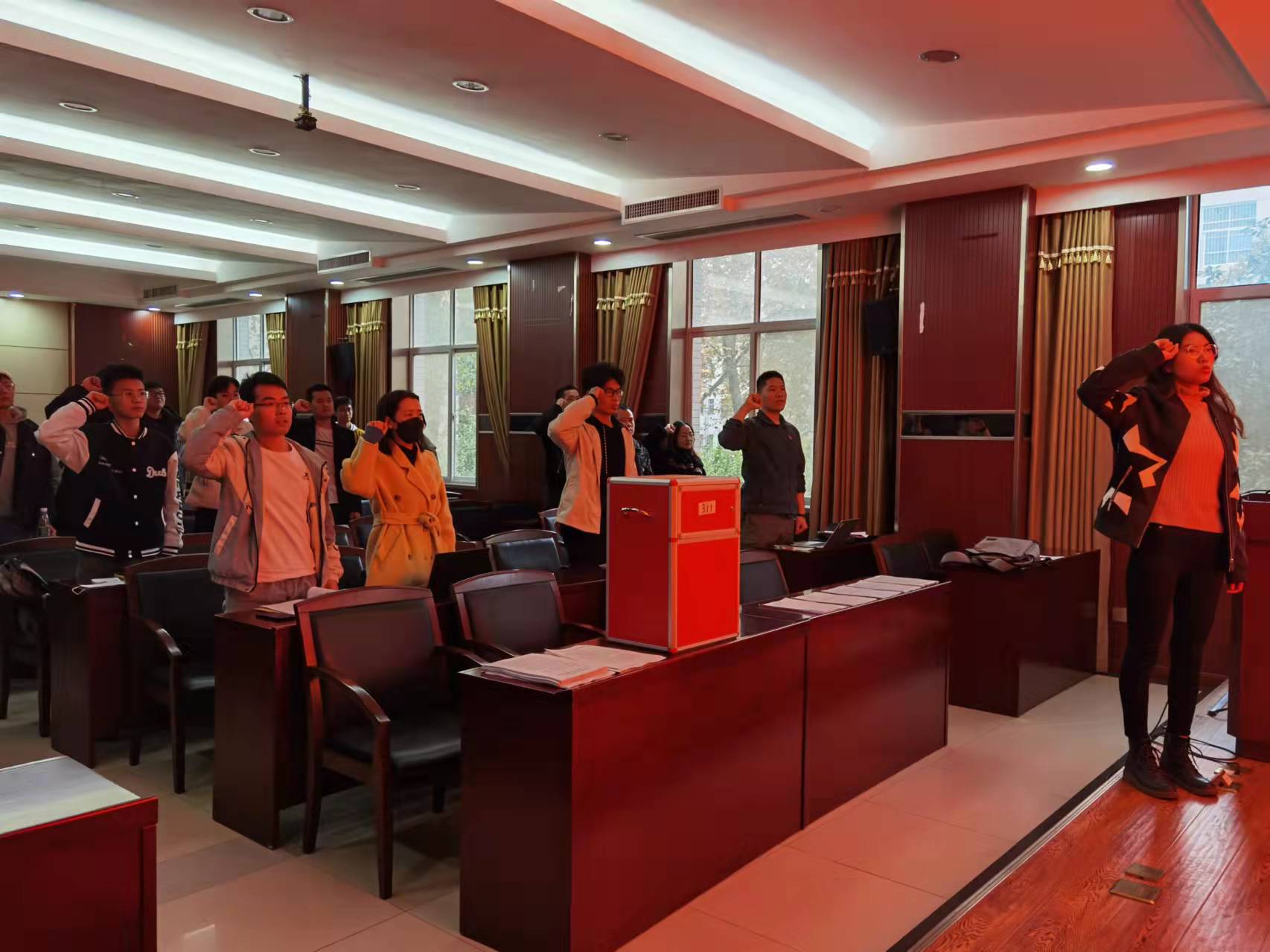会议最后,由环境科学与工程系研究生第三党支部副书记徐笑琪同志带领新党员宣誓,老党员重温入党誓词。