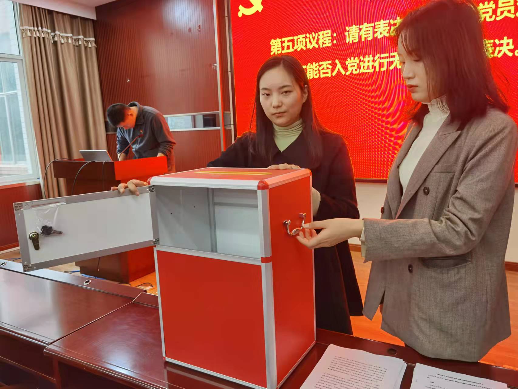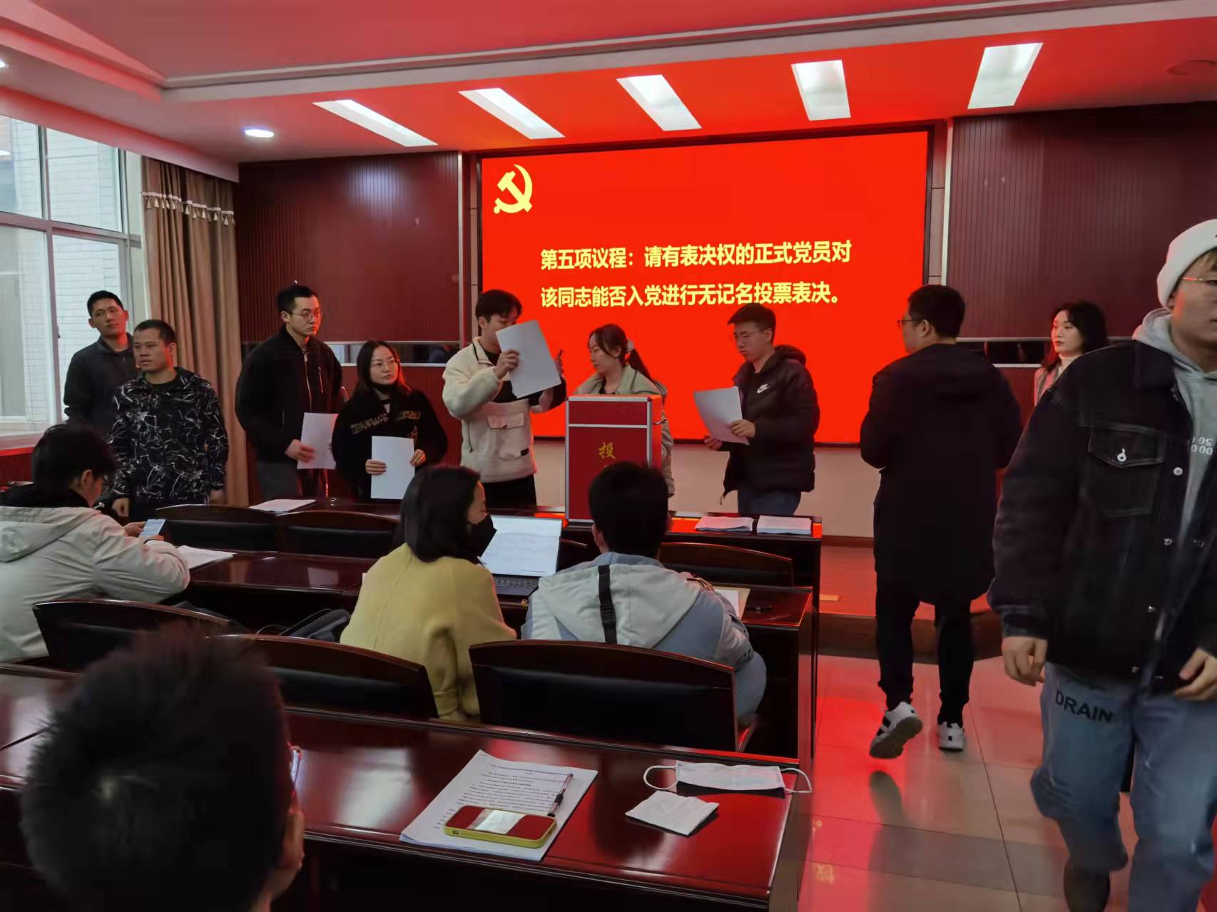 之后,石昊同志报告列席本次会议的人员情况,应到会正式党员25名,预备党员10名,实到会正式党员17名,预备党员5名,有表决权的到会人数超过应到会有表决权人数的半数,可以召开支部大会。