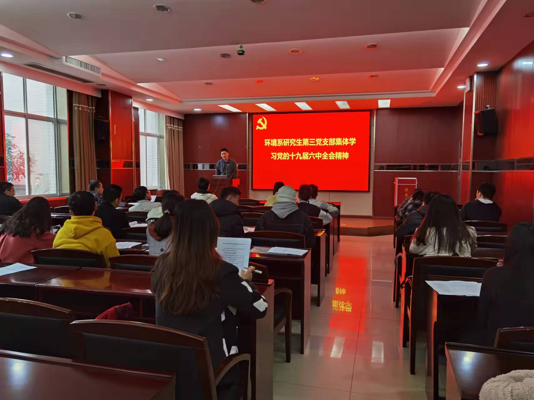 2021年11月21日12点,色情直播app 环境科学与工程系研究生第三党支部于院办220召开支部大会。本次会议由环境科学与工程系研究生第三党支部书记石昊主持,会议主要事务有以下三项:一是集体学习习近平总书记关于《中共中央关于党的百年奋斗重大成就和历史经验的决议》的说明,学习《中共中央关于党的百年奋斗重大成就和历史经验的决议》全文;二是环境科学与工程系研究生第三党支部讨论预备党员叶子涵同志转正的支部大会;三是环境科学与工程系研究生第三党支部讨论接收马永松、谢巍、程康同志为预备党员的支部大会。