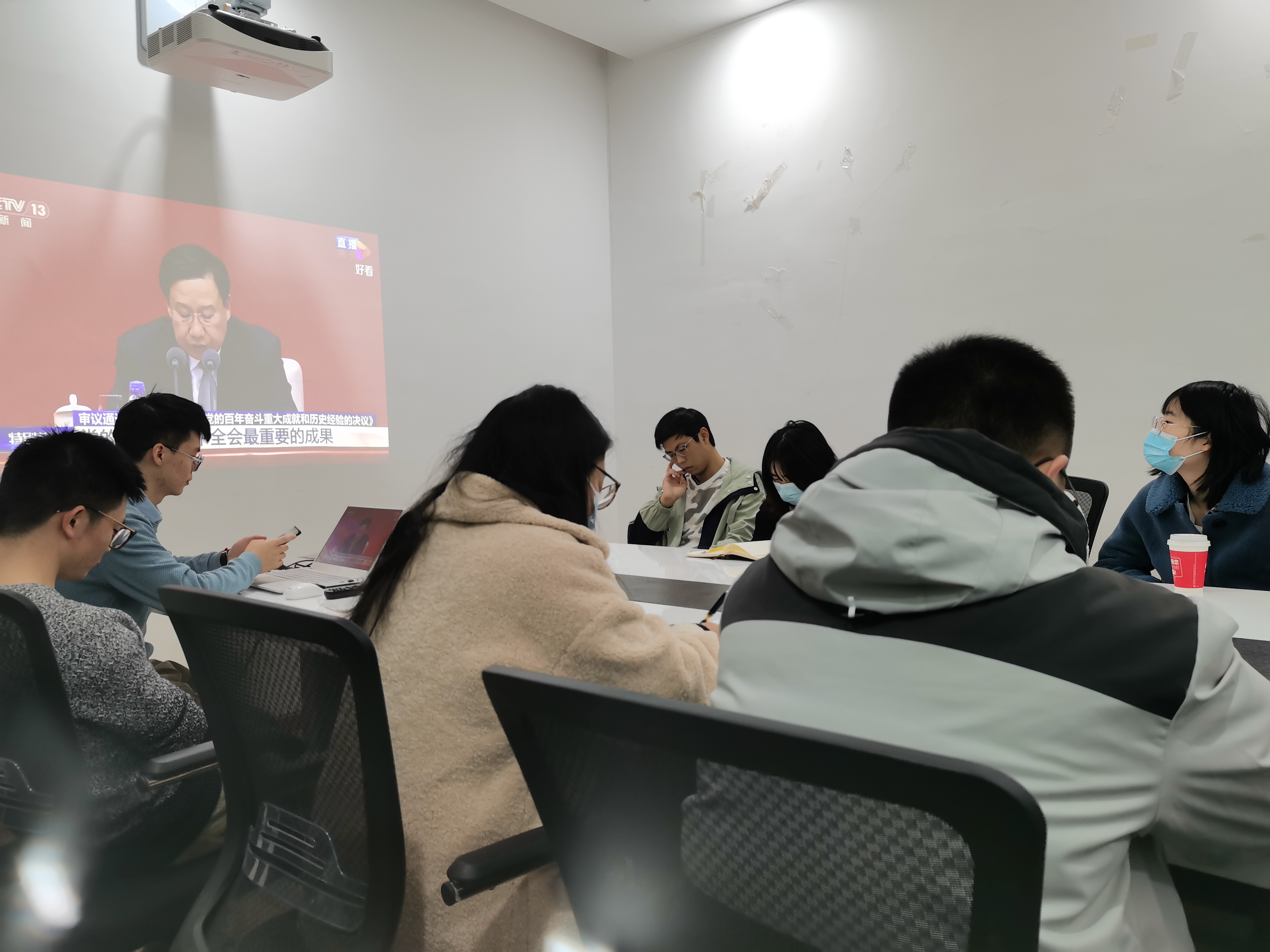会议第二项,学习党的十九届六中全会精神和感悟分享。到会同志一同观看了党的十九届六中全会视频进行学习,随后,同志们分享了感悟。齐鲁荷同志表达了对国家文化建设和“共同富裕”各项政策的体会感想;张静贤同志表示党的成功离不开党善于总结经验,我们也要从生活中总结经验,突破自我;郭晓嘉同志表示以史为鉴是党的优良传统,以党的奉献精神作为自己的宗旨;黄京同志表达了努力学习,为党奉献的决心;袁鸣蔚同志介绍了学习“一带一路”精神和政策的感悟;张弈辉同志表示我们作为青年党员要加强党史的学习,在自己的研究领域刻苦钻研,为党和国家奉献。