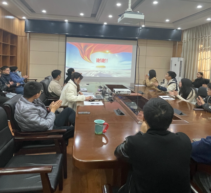 首先由党支部纪检委员陶卉婷同志通过幻灯片带领大家集中学习了党的十九届六中全会精神。主要从会议强调的“两个确立”,以及习近平新时代中国特色社会主义思想的核心内容这几个方面介绍了党的十九届六中全会的亮点和重点。
