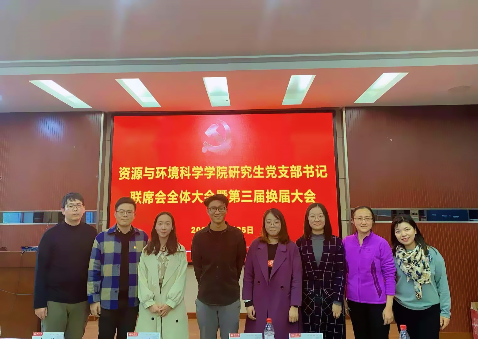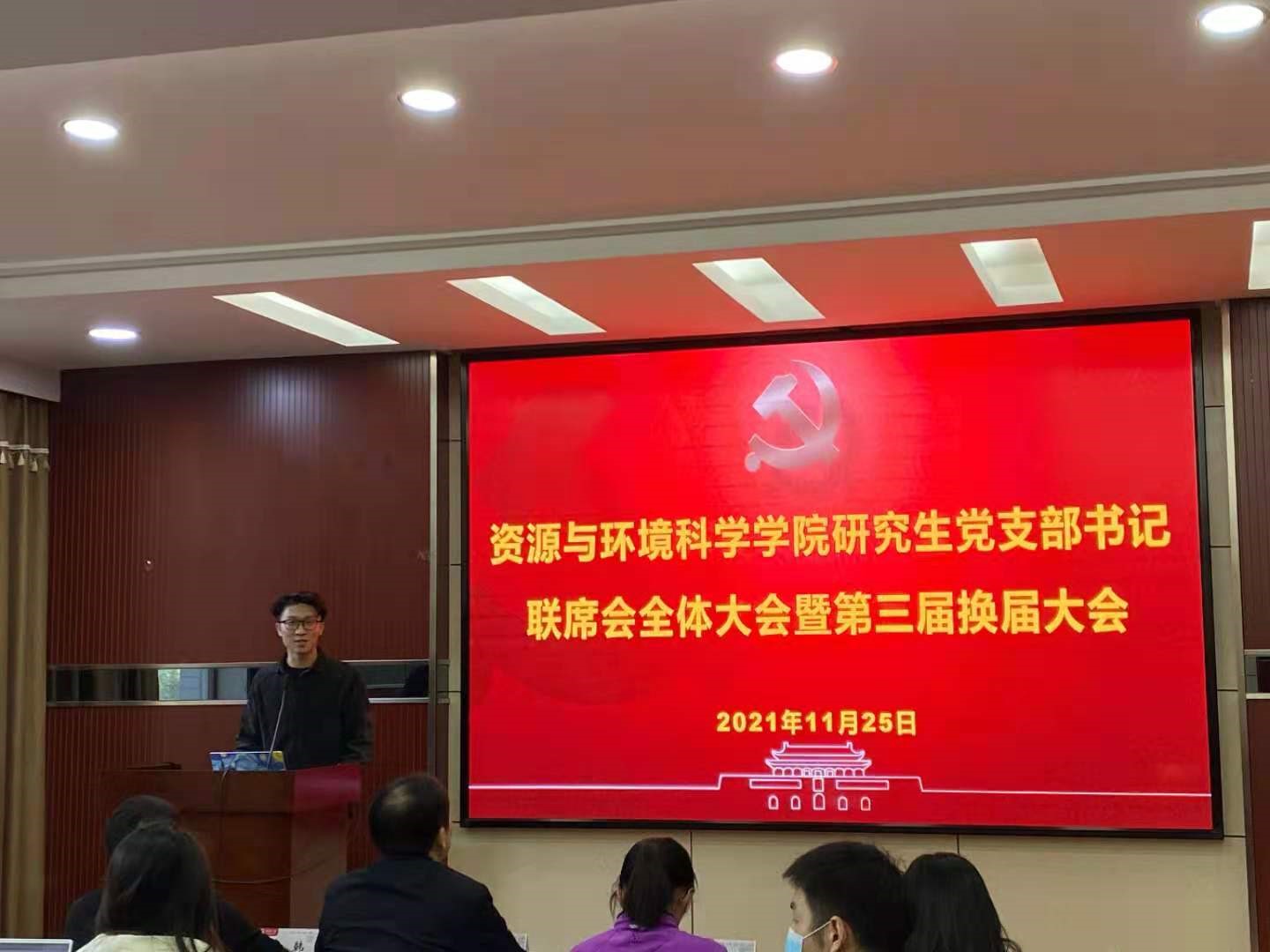 研究生党支部书记联席会全体大会暨第三届换届大会在色情直播app220报告厅隆重召开。院党委副书记雷起宏老师、院研究生辅导员马丽华老师、梅菲老师、李韩老师,院研究生会主席团成员钱婧同学和院研究生党支部书记联席会全体成员参会。