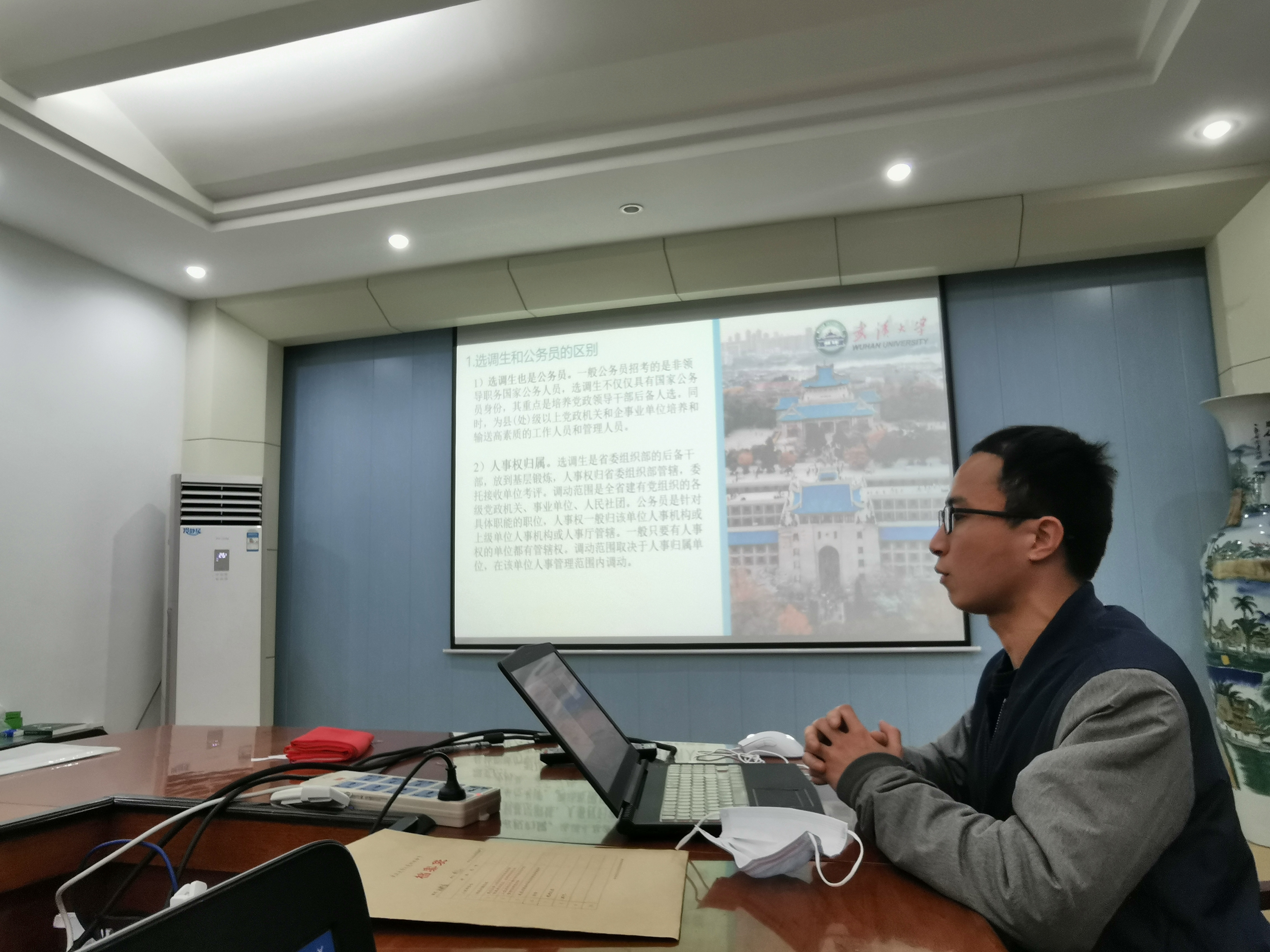 紧接着,莫昭洪同志进行了选调生备考的经验分享,包括选调生与公务员的区别、岗位和城市选择、考试内容、备考安排等。
