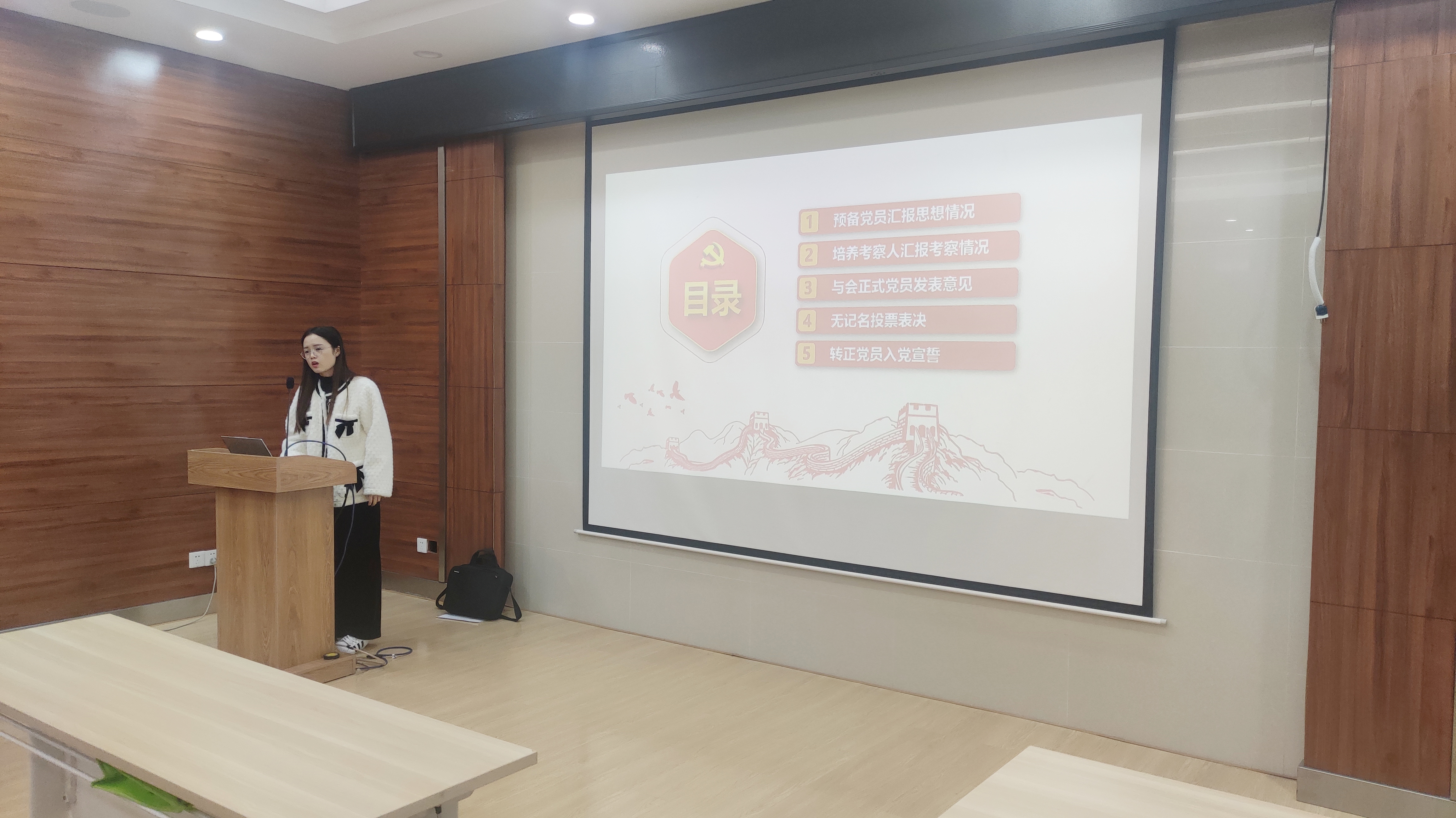汤慧玲同志向大家说明本次增设支部副书记一职的原因和必要性,并对候选人张铭浩同志进行了介绍。候选人张铭浩同志进行自我介绍,并向大家表明了想要担任副书记一职并为支部未来建设奉献自己一份力量的决心。根据党章和党内选举相关规定,经与会党员无记名投票表决,最终张铭浩同志以全员支持的投票结果成功担任支部副书记一职。