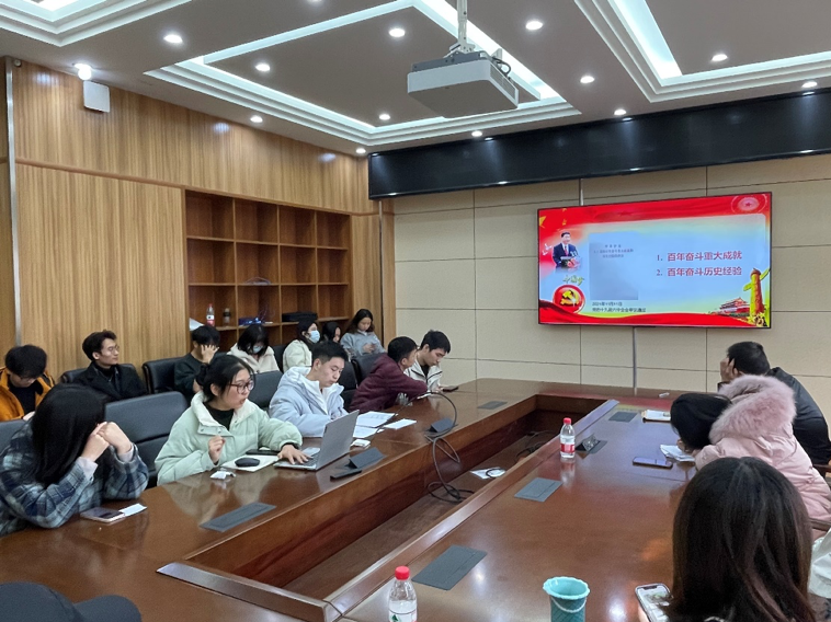 首先由艾慧同志通过幻灯片带领大家集中学习了《中共中央关于党的百年奋斗重大成就和历史经验的决议》。主要介绍了两个方面的内容:党的百年奋斗重大成就和历史经验。