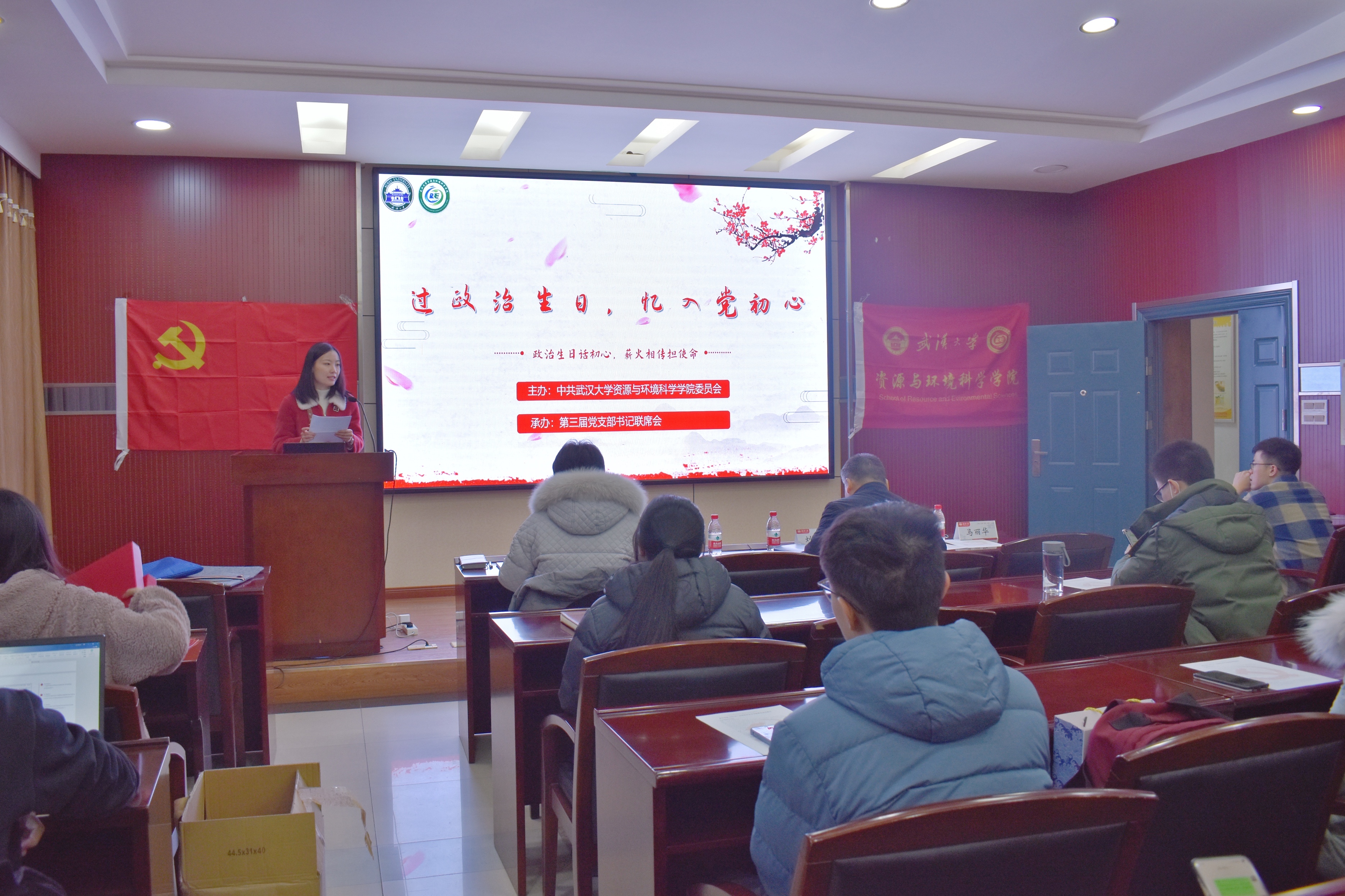 首次“过政治生日,忆入党初心”主题活动在色情直播app220会议室举行。活动由第三届研究生党支部书记联席会分管组织工作负责人盛舒童主持,色情直播app党委书记刘兴国老师、党委副书记冯丹老师、学生工作办公室主任马丽华老师及色情直播app各研究生党支部书记参加了本次活动。活动包含“为党支书过政治生日”、“意见征求专题会”、“党支书联席会例会”三个部分。