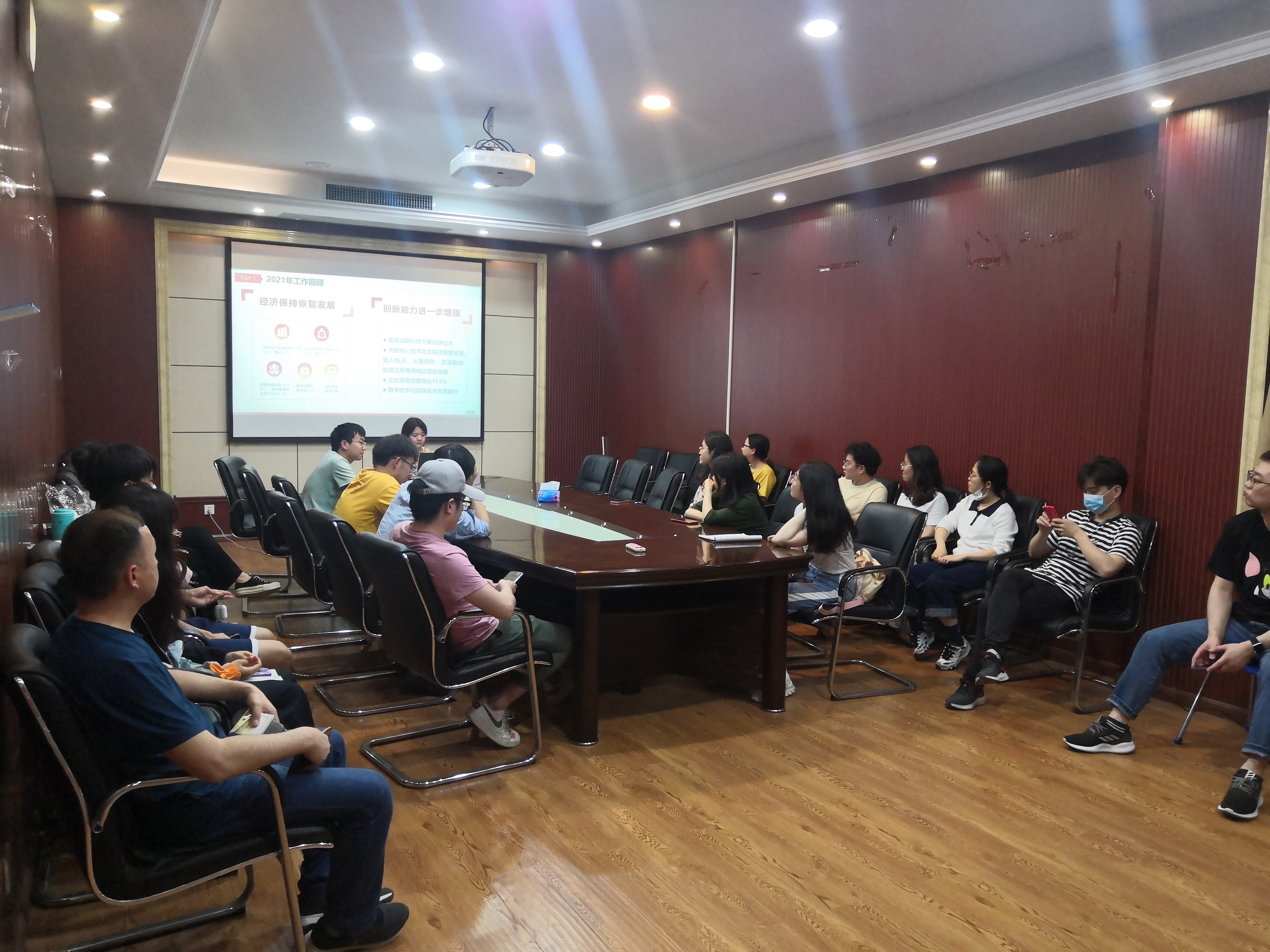 首先,党支部集体对2022年的政府工作报告进行学习。今年的两会在新冠肺炎疫情和世界百年未有之大变局背景下开展,但在上一年全国上下的不懈努力下仍然取得了不错的成绩。两会期间,政府工作报告全面总结了上年我国取得的各方面成绩并着眼今年部署有关任务。