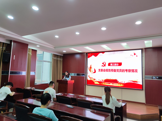220会议室召开了预备党员转正大会。本次会议由支部书记罗明霞同志主持,党支部讨论了王权同志预备党员转正相关事宜。