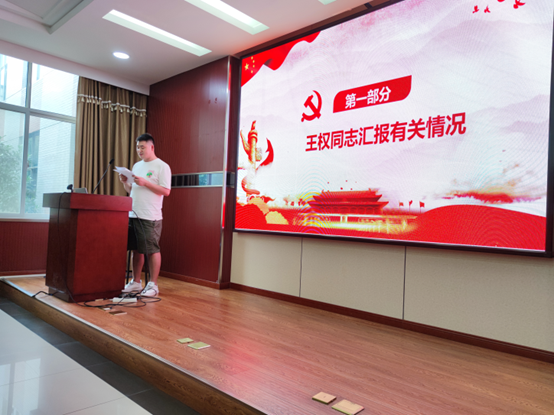 首先,王权同志向组织汇报自己了在预备党员考察期间的学习收获、在校表现等情况,阐述了个人思想认识等方面的进步,表达了自己的转正意愿。