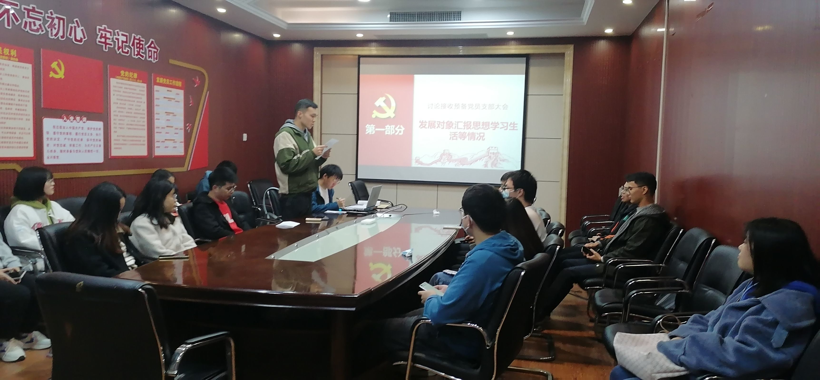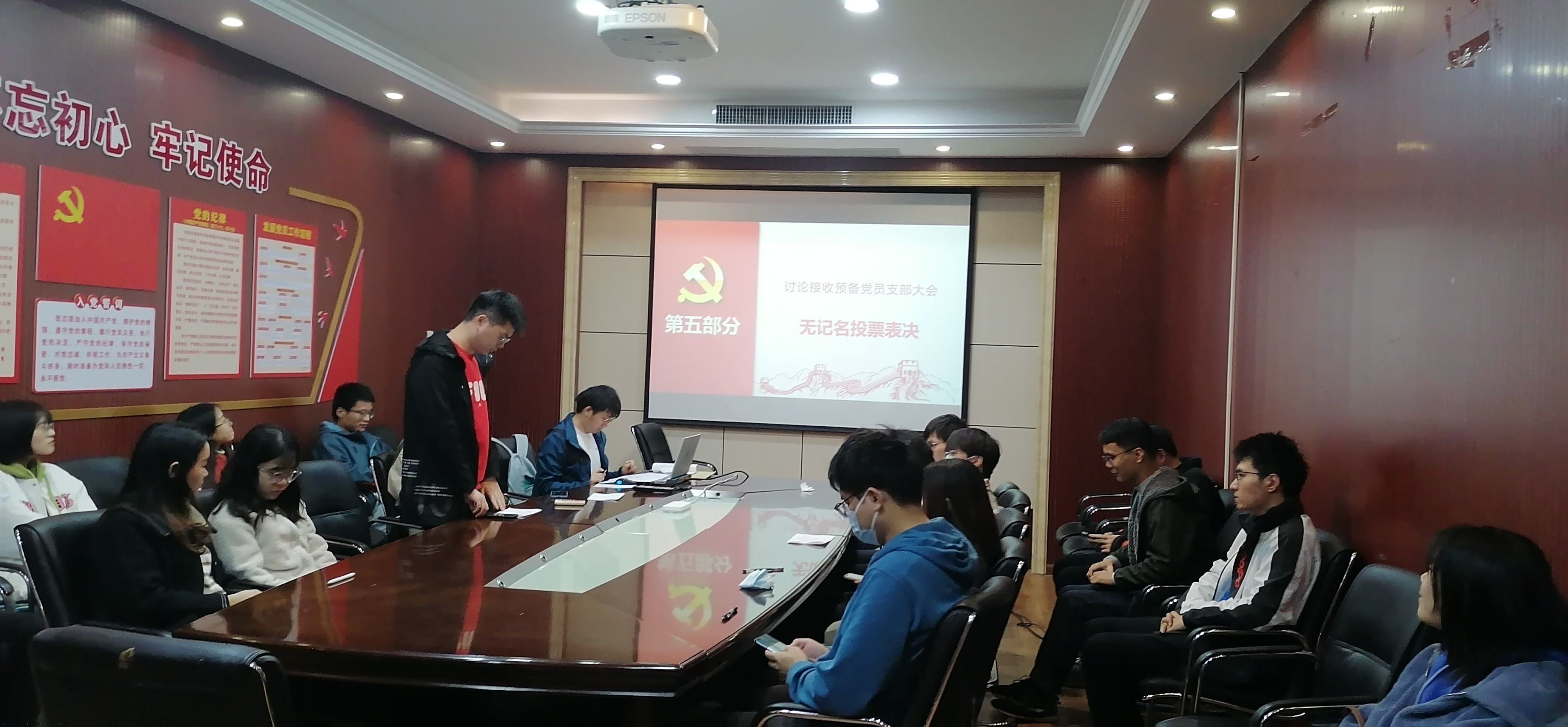 然后,与会党员对于朱俊杰同志与赵炜同志被接收为预备党员的申请进行了充分的讨论。各个党员积极充分地发表意见,对两位同志在理论学习、工作生活等方面的表现与不足进行了客观的评价。