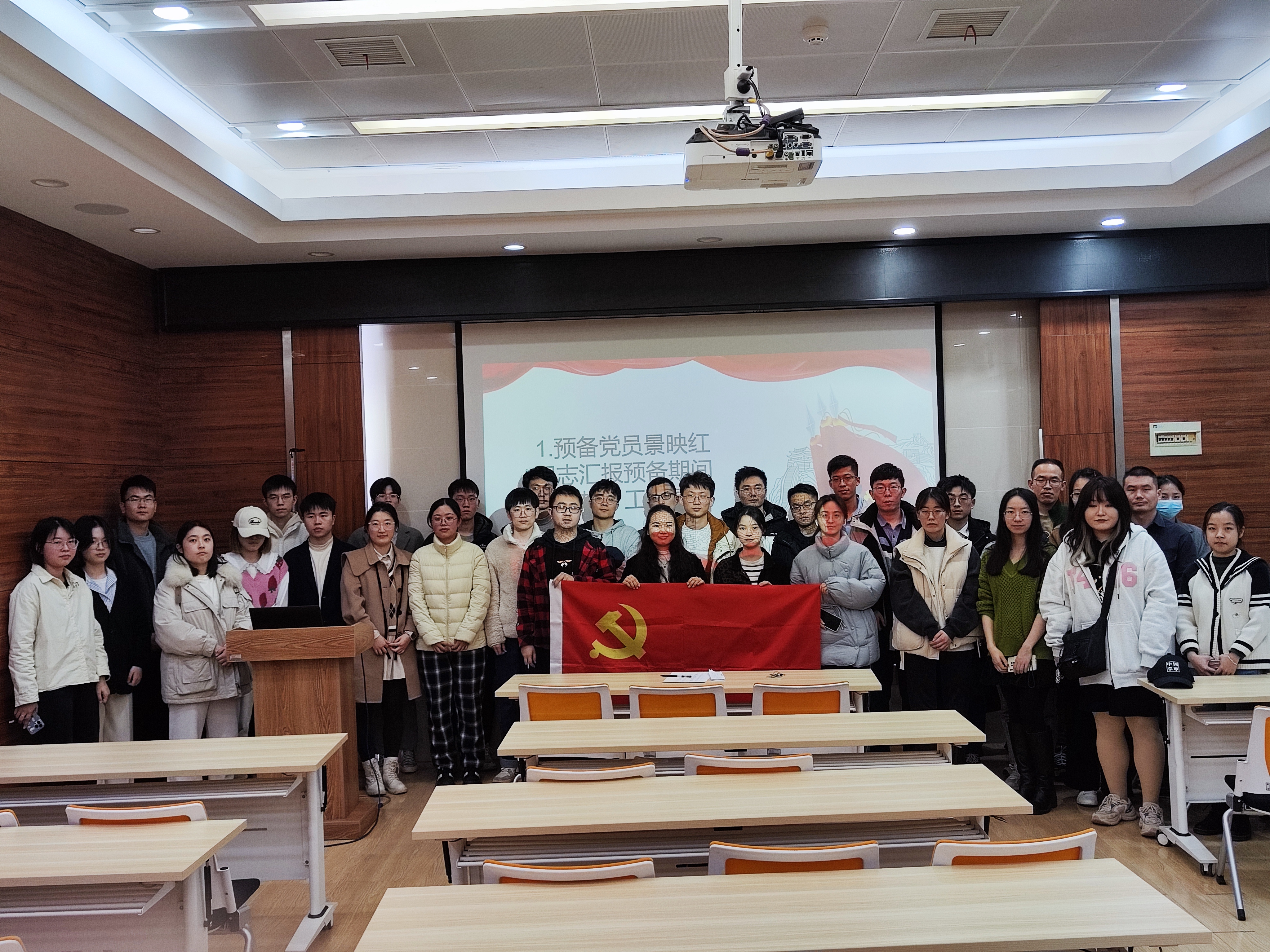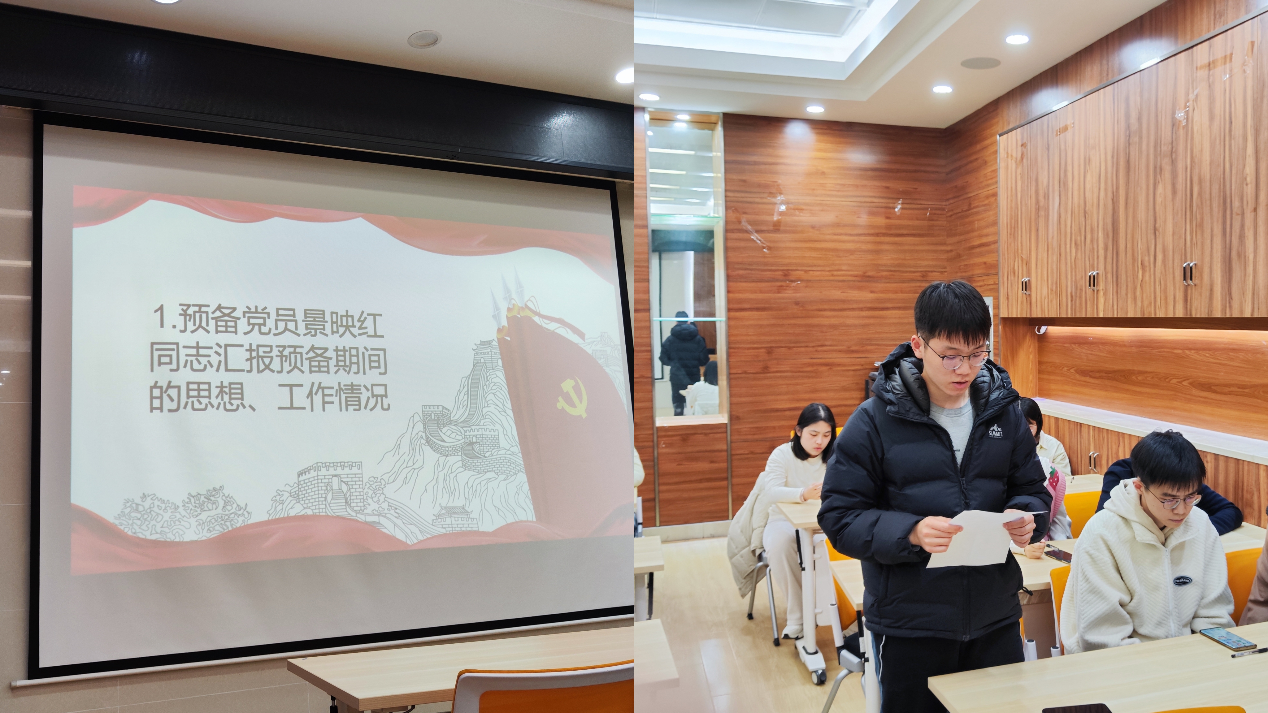 2023228日下午17:00,地理信息与地图科学系研究生第四党支部于电脑城429及线上腾讯会议召开了景映红与周玮两位同志的预备党员转正大会。景映红同志因出差原因于线上参会,本次大会由支部书记焦丹同志主持。