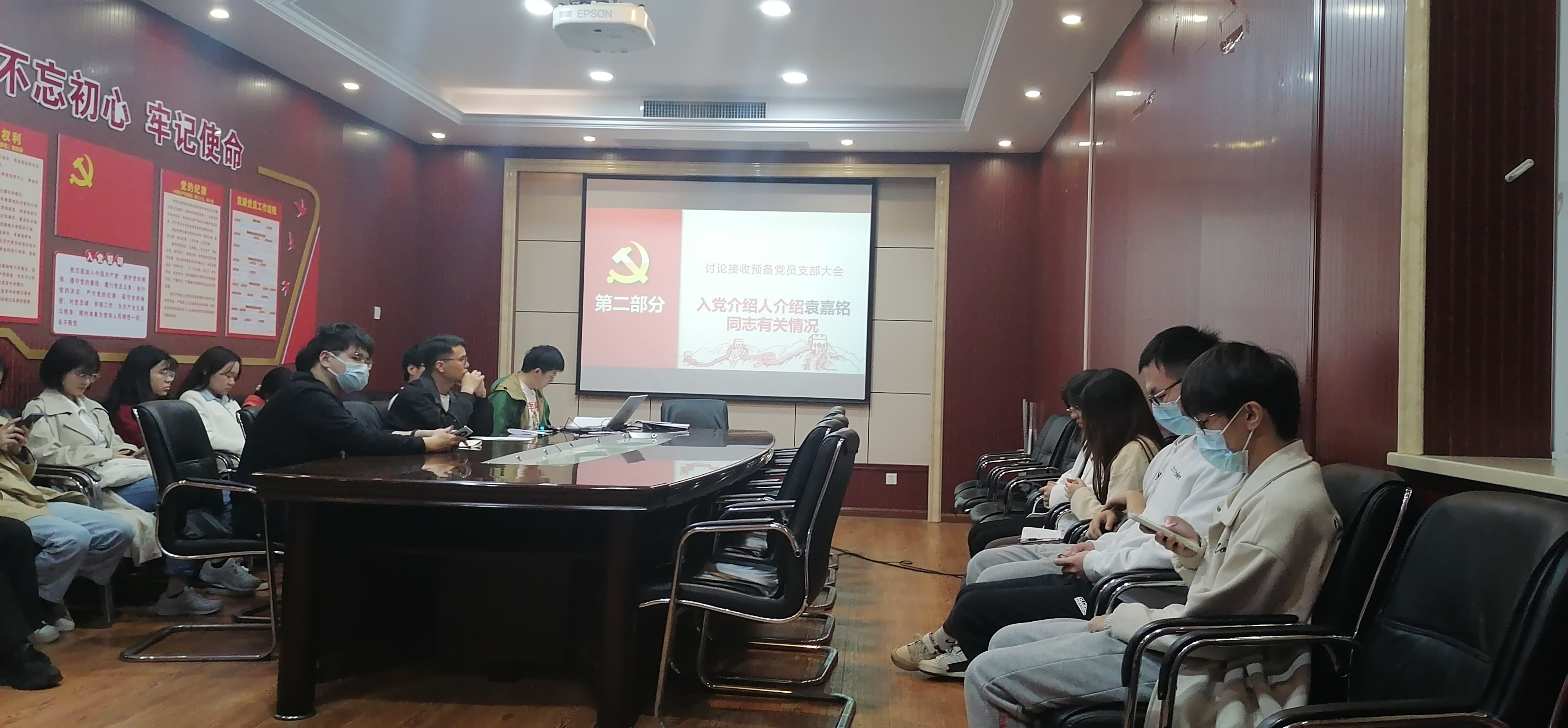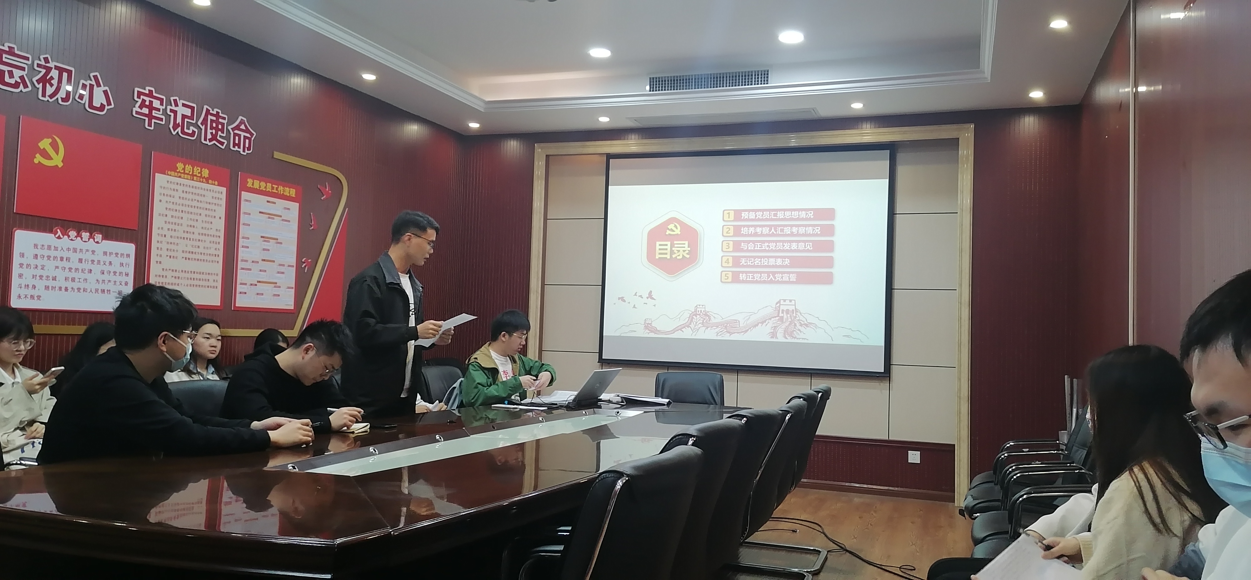 会议开始,由支部书记邹仁伟同志对本次会议的基本内容进行了介绍,主要为讨论袁嘉铭同志的预备党员接收、讨论孔博同志的预备党员转正和开展民主评议会三个部分。