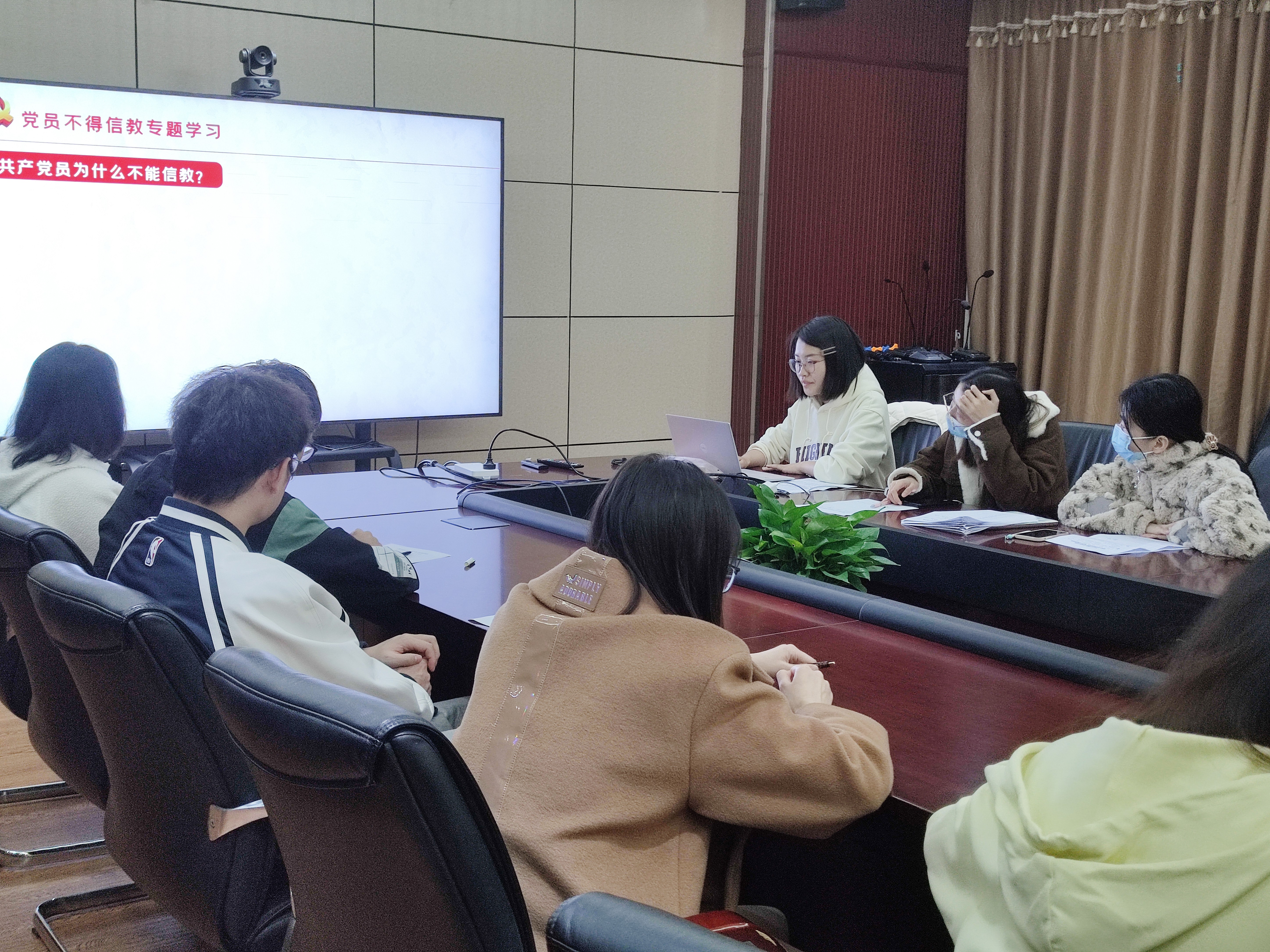 202331619:30,环境科学与工程系研究生第二党支部在资环院办320开展组织生活会和民主评议党员工作,同时进行党员不能信教专题学习。本次会议由党支部书记何凡同志主持,支部党员、发展对象、积极分子参加会议。