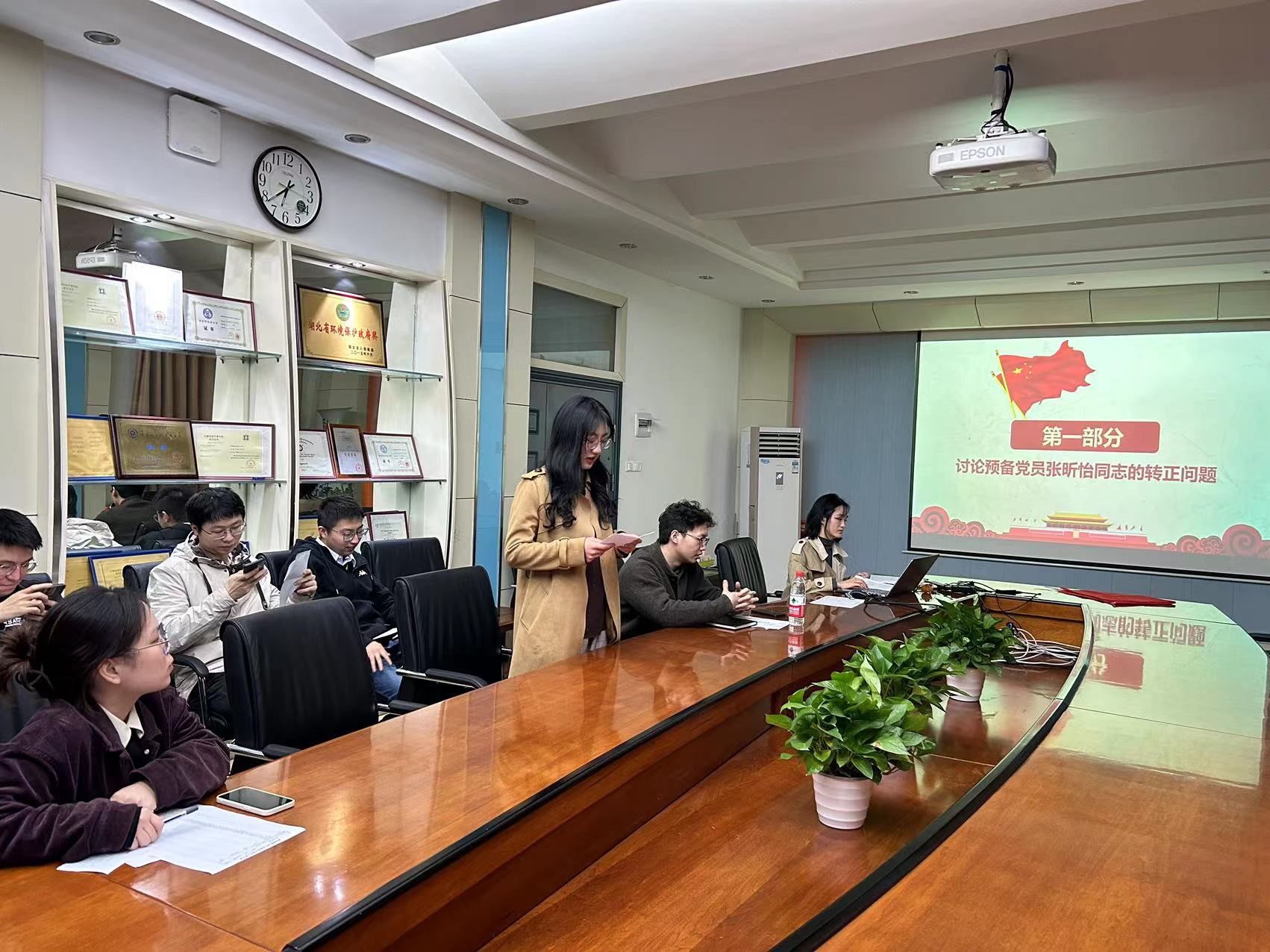 会议第一项,讨论预备党员张昕怡同志的转正问题,预备党员张昕怡汇报对党的认识、近期学习情况等问题,向党组织提出转正申请。