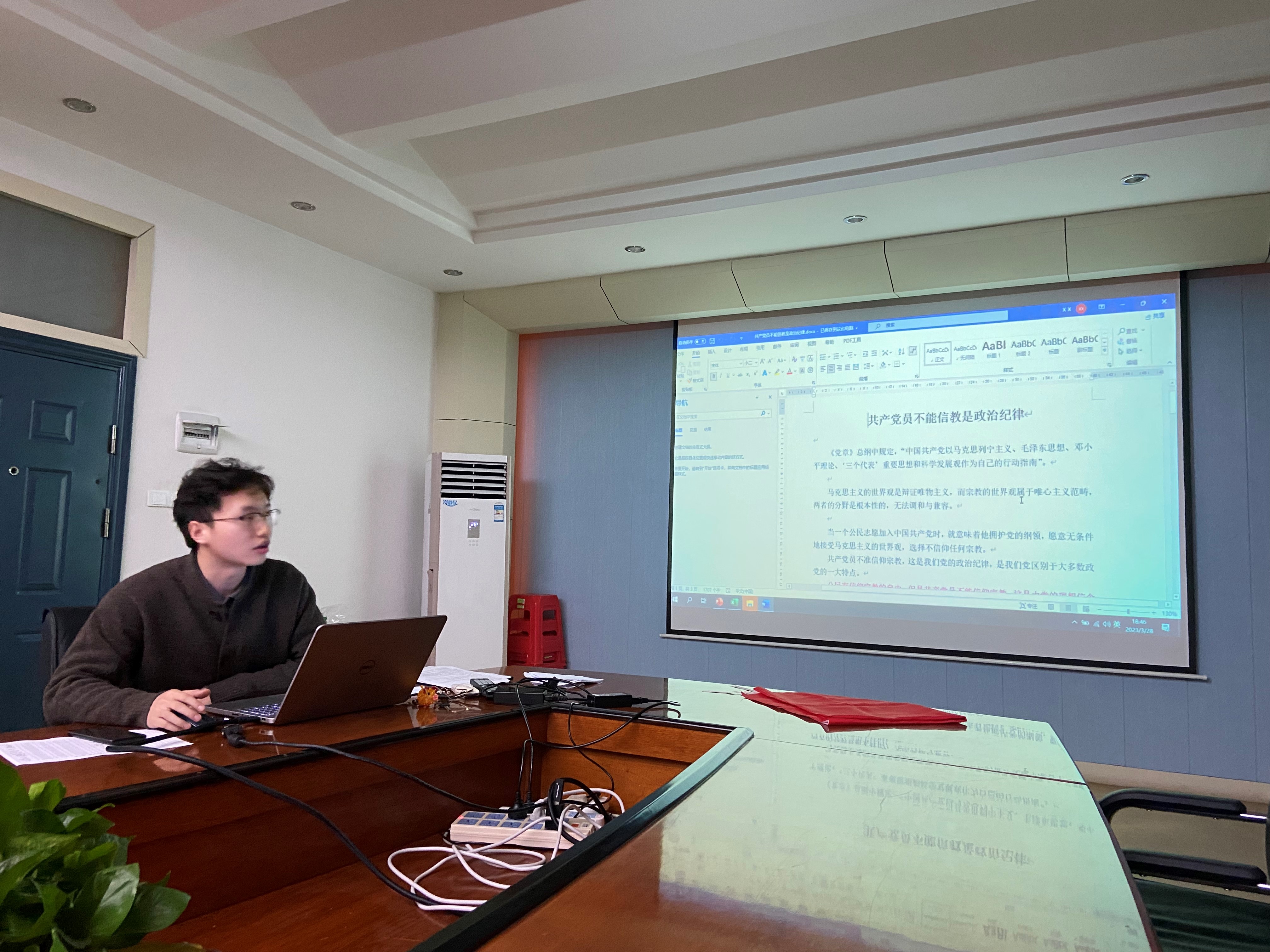随后召开会议第二项,宣传委员谢怡凡同志进行主题为“党员不得信仰宗教”的专题教育分享,围绕共产党员为什么不能信仰宗教、共产党员如何找到自己的价值和信念进行了分享。