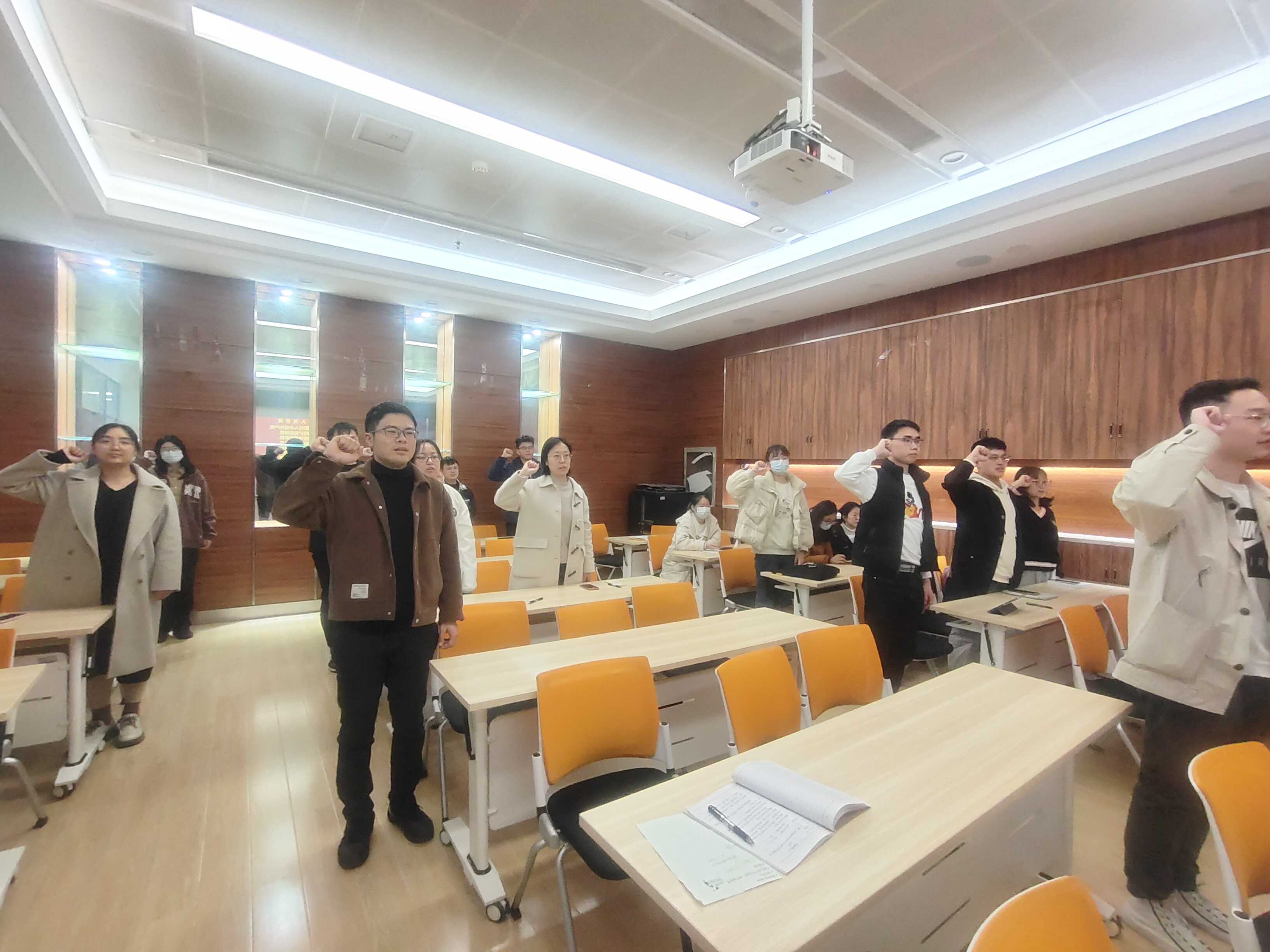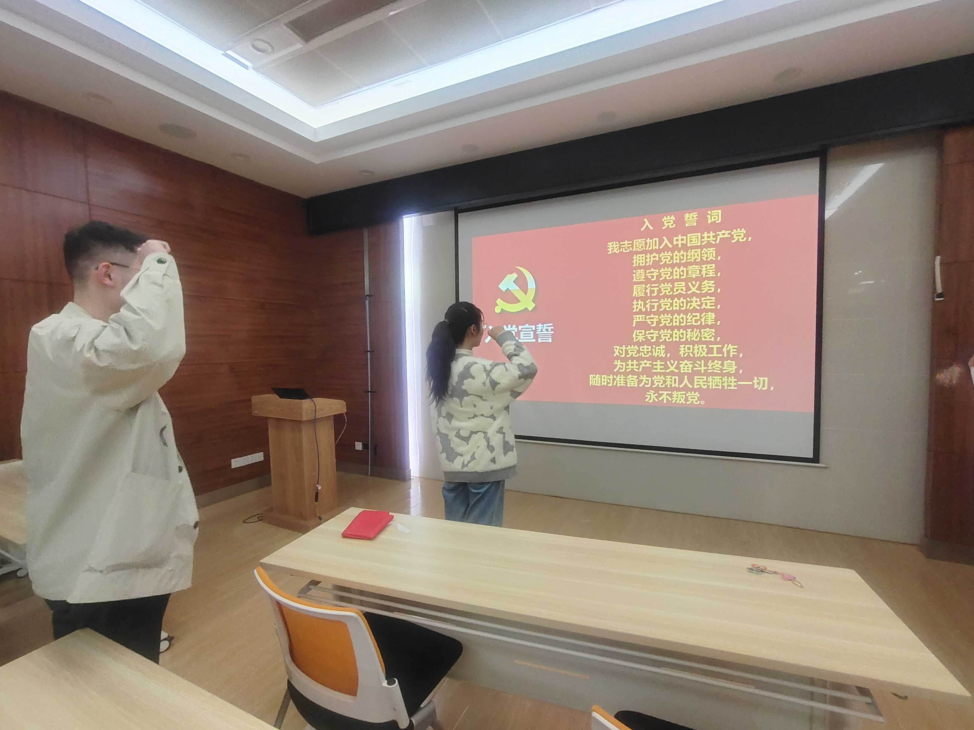 会议第四项,讨论秦坤同志的转正问题。由周宇氚同志介绍了秦坤同志的学习、生活、思想情况,符合党员标准,支部委员会审查后决定同意召开支部大会讨论该同志的转正问题。同时秦坤同志向党组织汇报了自己在党员发展期间的学习收获、思想认识、在校表现等情况。接着由正式党员进行无记名投票并现场公示投票结果,同意16票,反对0票,弃权0。经表决,秦坤同志得到党支部大会的一致认可。周宇氚同志宣布决议,同意秦坤同志的转正。最后,全体党员在组织委员樊玉鑫同志的带领下重温入党誓词。