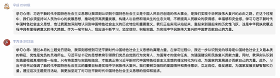 202359下午五点,地理信息与地图科学系研究生第三党支部于线上召开“学思想、强党性、重实践、建新功”主题党日活动,本次主题学习围绕学习贯彻习近平新时代中国特色社会主义思想主题教育理论学习方案要求展开,教育引导支部成员进一步感悟习近平新时代中国特色社会主义思想的真理力量。何欣阳同志分享了关于学习贯彻习近平新时代中国特色社会主义思想主题教育的相关学习资料,并组织支部成员们进行了集中学习。会后,支部成员们对所学心得发表感悟和总结。