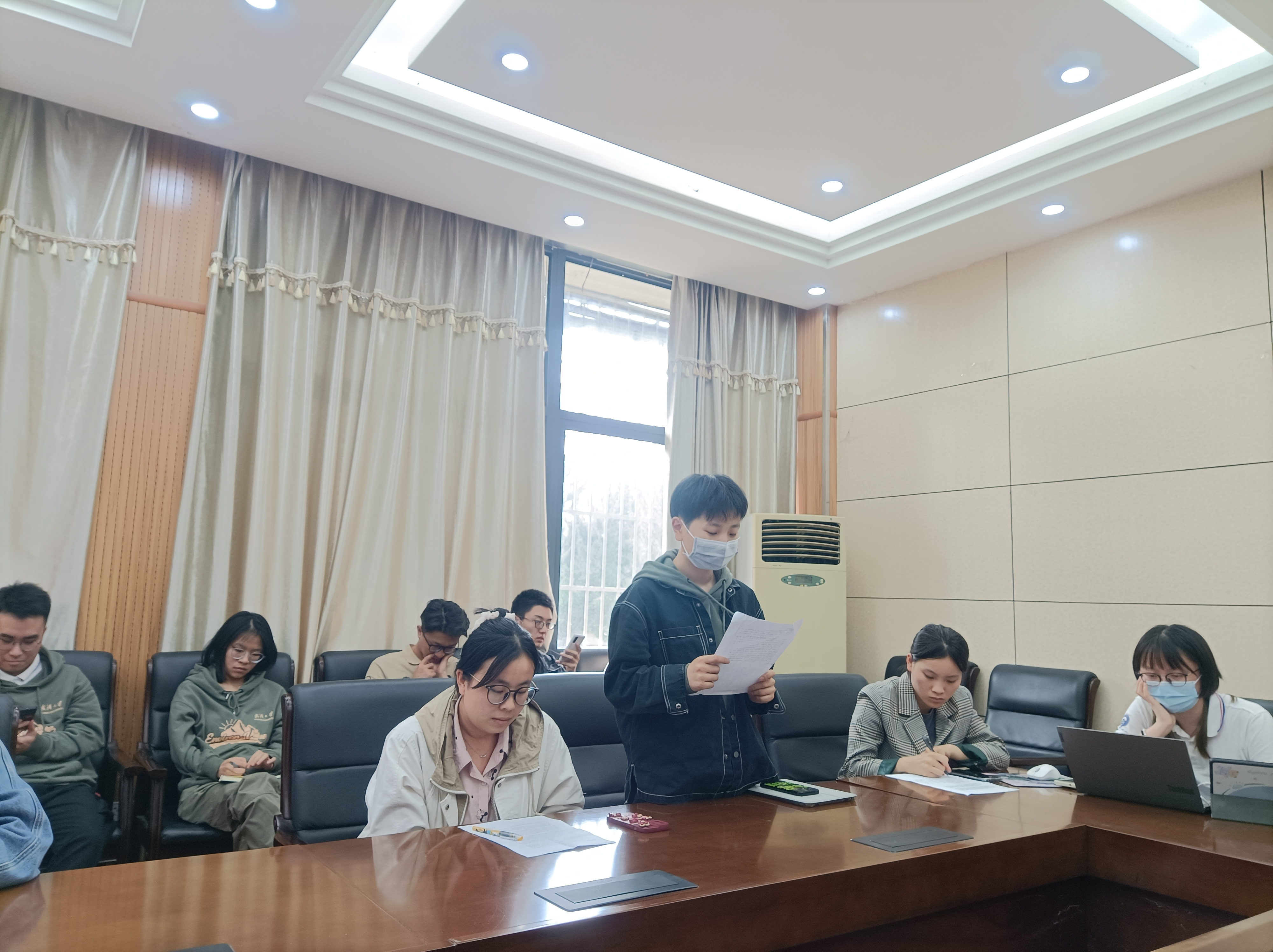 2023522日下午1430分,环境科学与工程系研究生第四党支部接收预备党员大会暨换届大会于工学部动机院院办212会议室召开。本次会议由支部书记蔡云高同志主持,主要内容为对宋华英、盛迪格和刘湘同志的预备党员接收谈论,同时进行支委换届。会议应到正式党员26人,预备党员2人,实到正式党员19人,预备党员1人。具有表决权的正式党员到会人数超过应到人数的一半,符合规定的人数要求,可以开会。