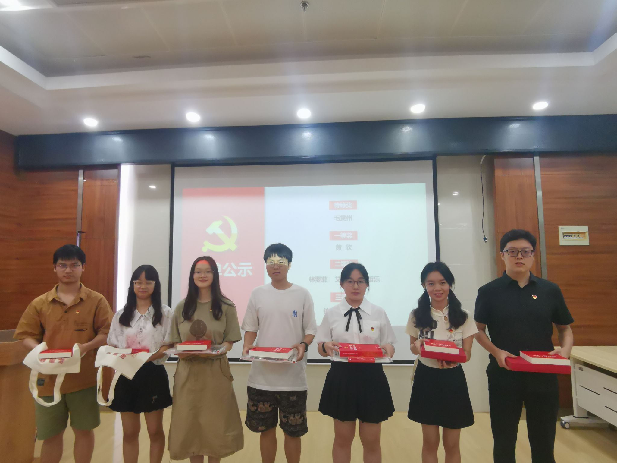 第二项议程,党建活动积极分子表彰。首先以视频的方式带大家回顾了支部全年的党建活动,并在此感谢支部成员对于支部党建活动的大力支持。接着,由组织委员邵乘霖同志详细的介绍了支部活动的评优细则,并依据该细则评选出了毛贯州、黄欣、林斐菲、艾小童、张哲乐、钟新润、吴雨共七位党建活动积极分子。最后,艾小童与毛贯州同志分别作为毕业生与党建活动积极分子代表为大家进行了学习思想的交流分享。