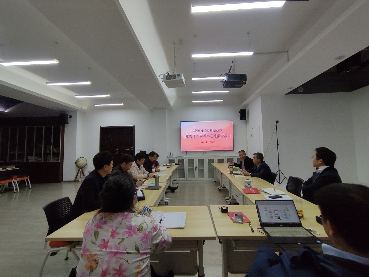 11月25日,资环色情直播app党委理论学习中心组召开集体学习会,专题学习党的十九届六中全会精神。色情直播app领导、党委委员等参加了学习,院党委书记刘兴国主持。